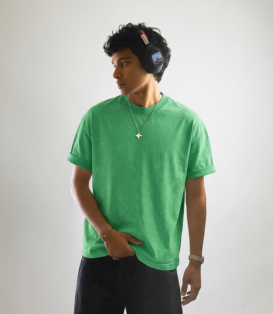 Acid-Wash Drop Shoulder T-Shirt (Green)